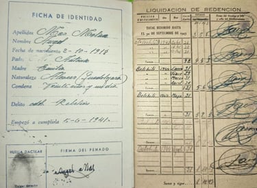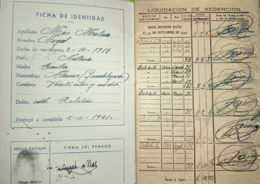 Ángel estuvo en las prisiones de Alcocer, Guadalajara, Burgo de Osma y Belchite, donde le destinaron a un batallón disciplinario, dedicado a “redimir condena” trabajando en la construcción de la presa de Entrepeñas por la mitad de salario que el resto de trabajadores. Allí estuvo unos dos años. Luego le trasladaron a El Dueso, donde obtuvo la libertad condicional en el verano del 47. Hizo la obligada mili en Zeluán, al sur de Melilla, y le concedieron el indulto por fin en mayo de 1948.